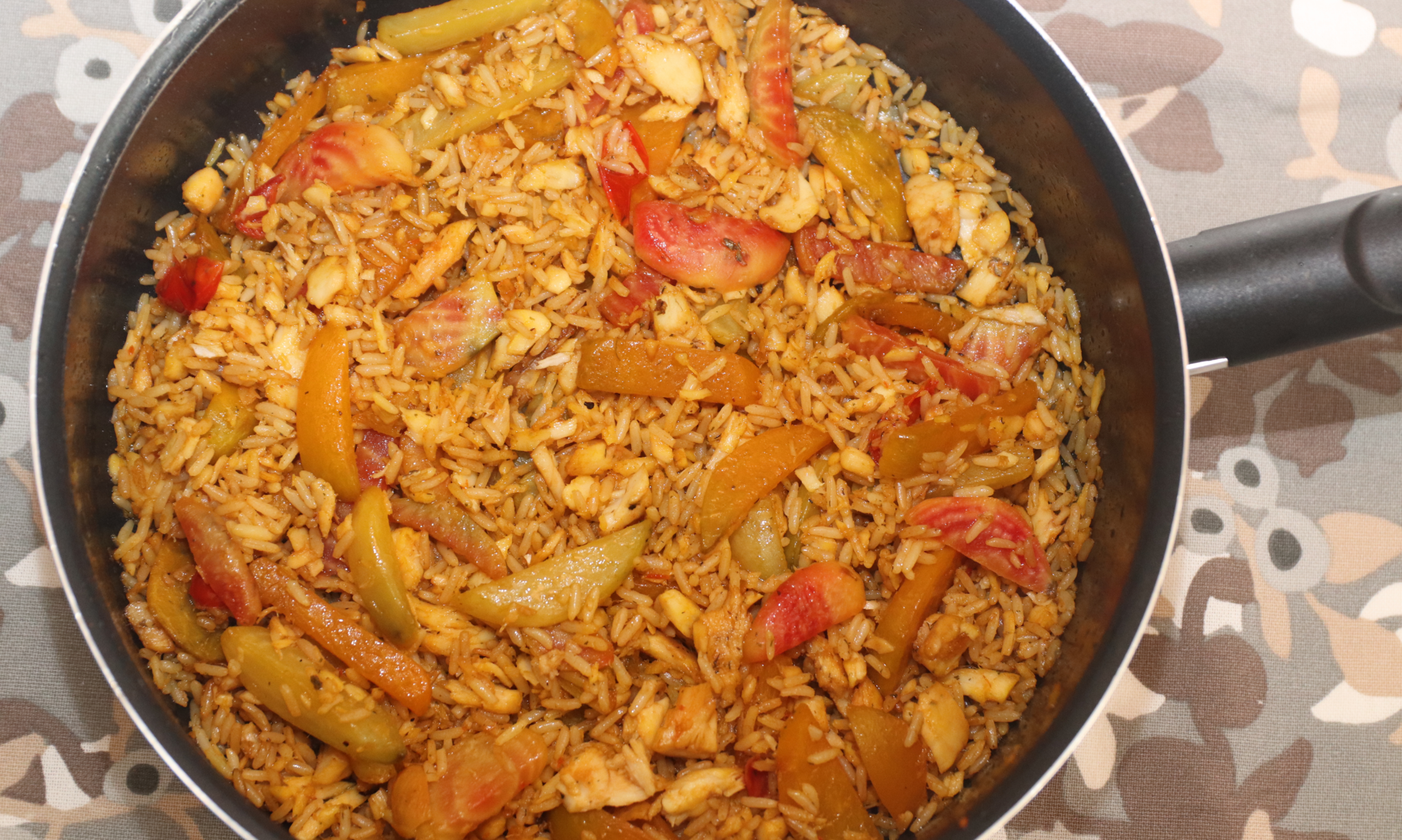 Keitä riisi ohjeen mukaan ja jatka vielä hieman kasvisten ja kalan kypsennystä. Kun riisi on valmista, valuta vesi ja sekoita muiden joukkoon. Lisää mausteet ja pyörittele wokkia parisen minuuttia.