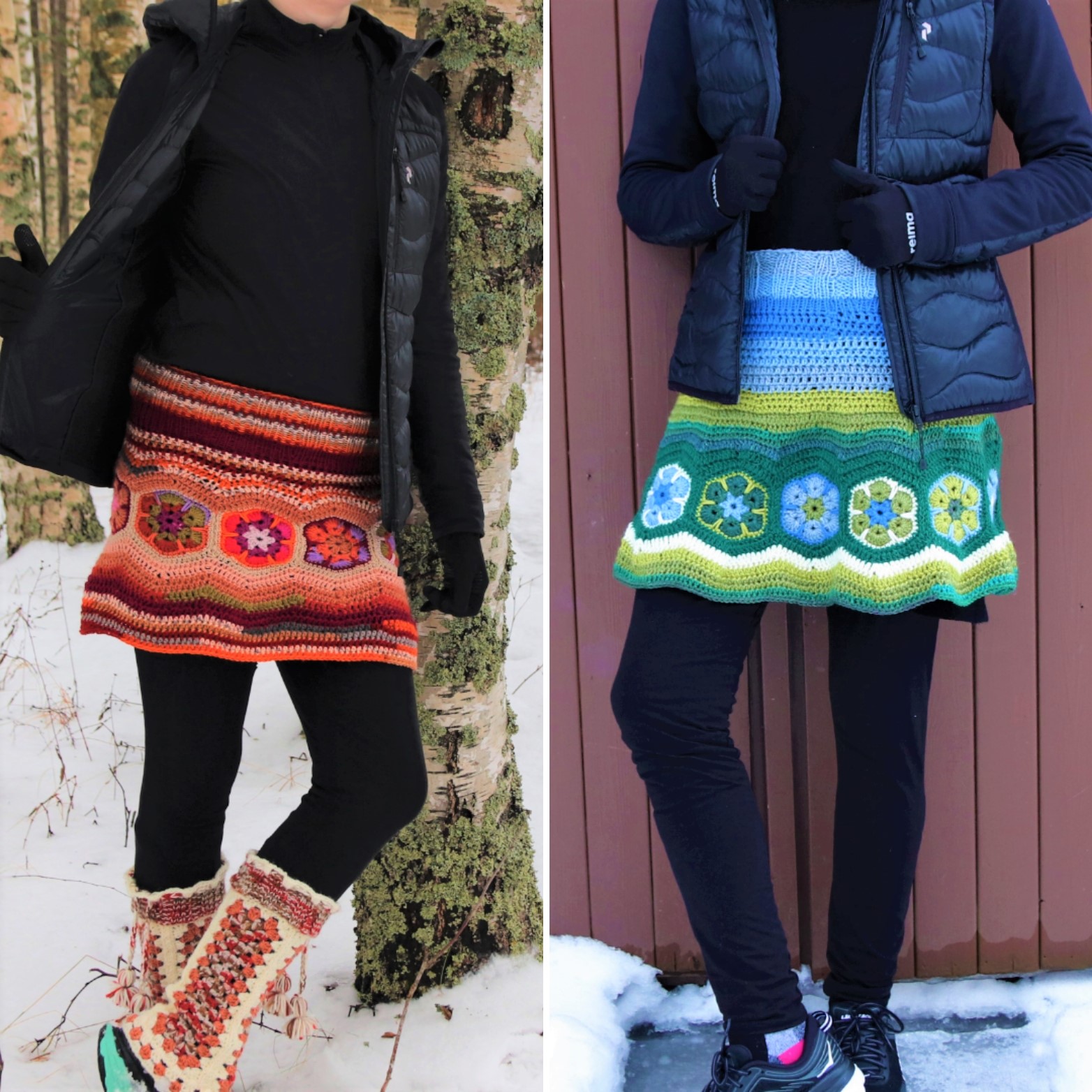 Afrikankukka on siis yhtä monikäyttöinen kuin isoäidinneliötkin. Siitä voi tehdä peittoja, vaatteita, asusteita, sisustusjuttuja…