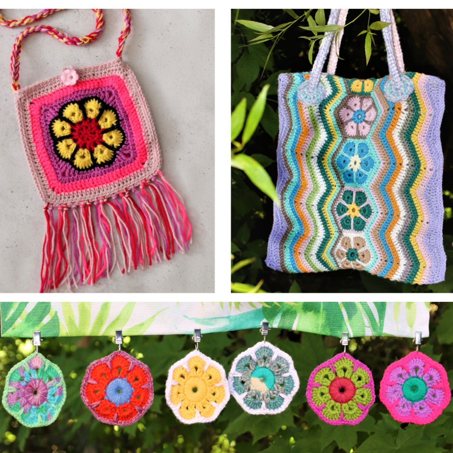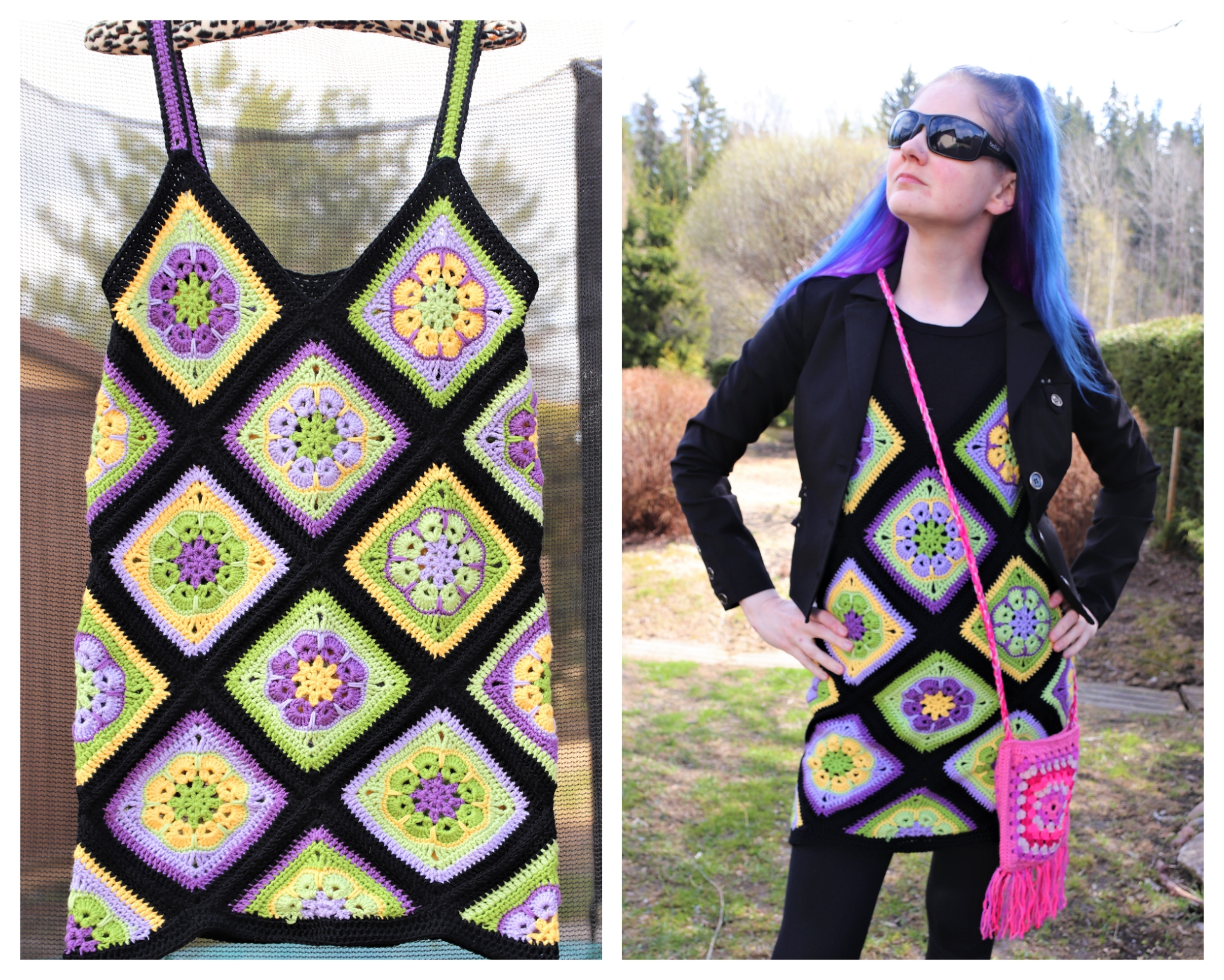 Afrikankukka on siis yhtä monikäyttöinen kuin isoäidinneliötkin. Siitä voi tehdä peittoja, vaatteita, asusteita, sisustusjuttuja…