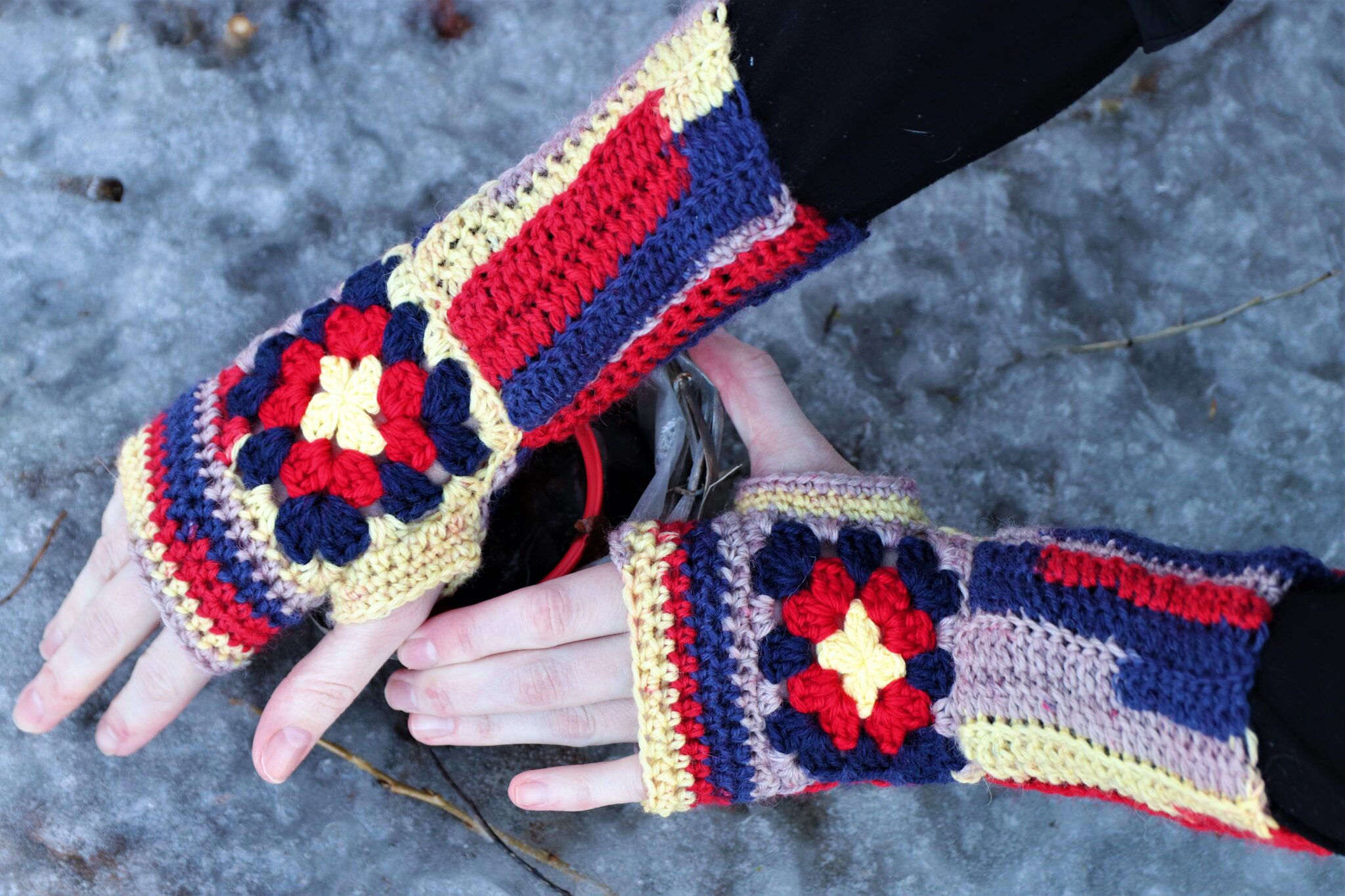 - Yhteen pariin lankaa n. 50-100 g, riippuen kuinka pitkän varren haluat (ja jos kämmekkäät muuten isoa kokoa)