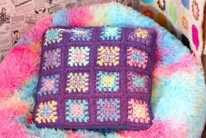 9.krs: Vaihda väri ja virkkaa joka toiseen silmukkaan 4 puolipylvästä siten, että jätät jokaisesta viimeisen langankierron koukulle ja vedät ne kerralla ( = puhvisilmukka ) + sen jälkeen aina 2 kjs. Kulmiin 1 puhvi + 2 kjs + 1 puhvi.