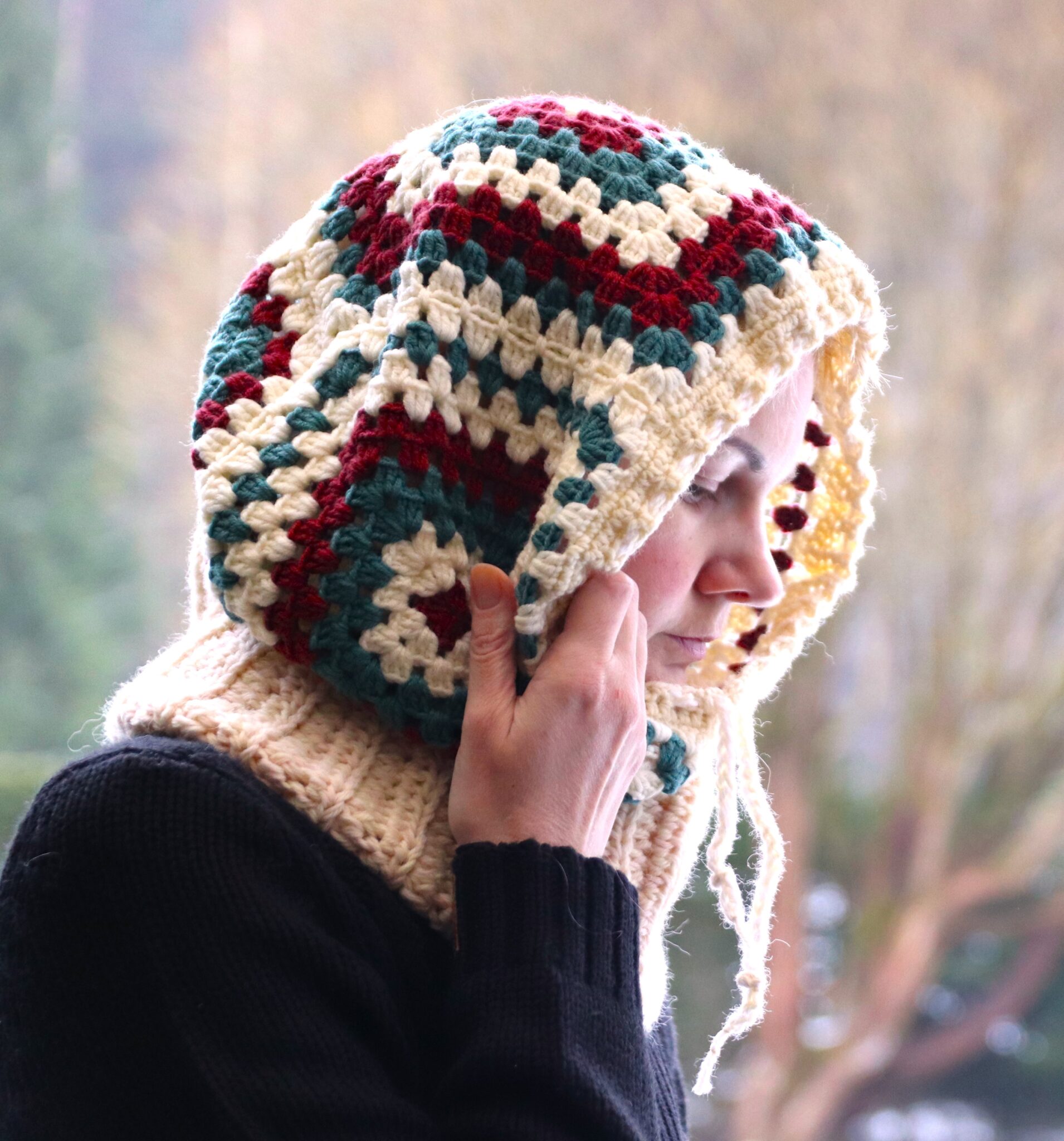 Eli nyt sitten yhdistämään isoäidinneliö-balaclavaa ja huppukauluria niin tulee näppärä ja lämmin talviasuste. Toki isoäidinneliöt ovat hieman reikäisiä, mutta tuskin kukaan nyt lähteekään pitkiksi ajoiksi ulos kovaan pakkaseen pelkän balaclavan kanssa? Ja jos lähtee niin ehkä siinä tapauksessa pipo alle. 😊