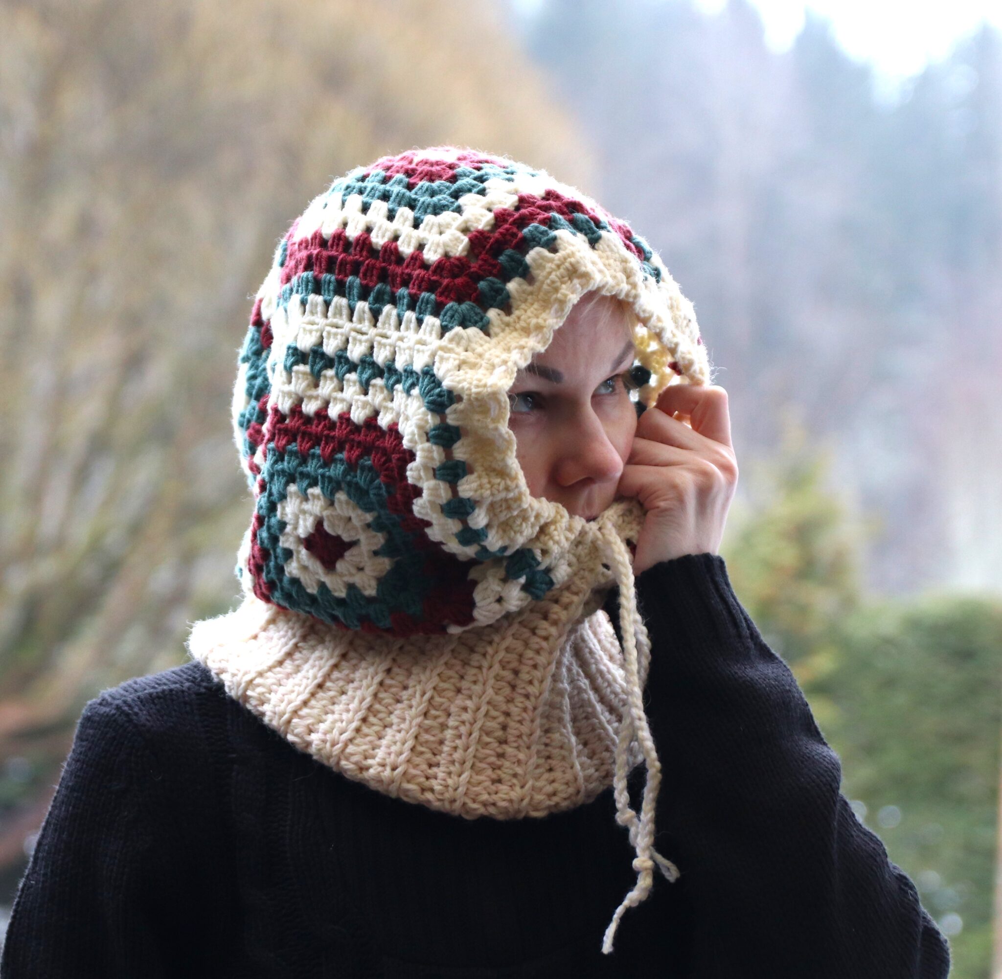 Alkuajatus on tuttu (ainakin melkein) kaikille: jo parin vuoden aikana kovinkin trendaava balaclava-huppu isoäidinneliöistä. No jos liitetään tähän kaveriksi tämän syksyn ja talven trendaava virkkaus eli huppukauluri niin mitä saadaan? Balaclava-huppukauluri 😊.