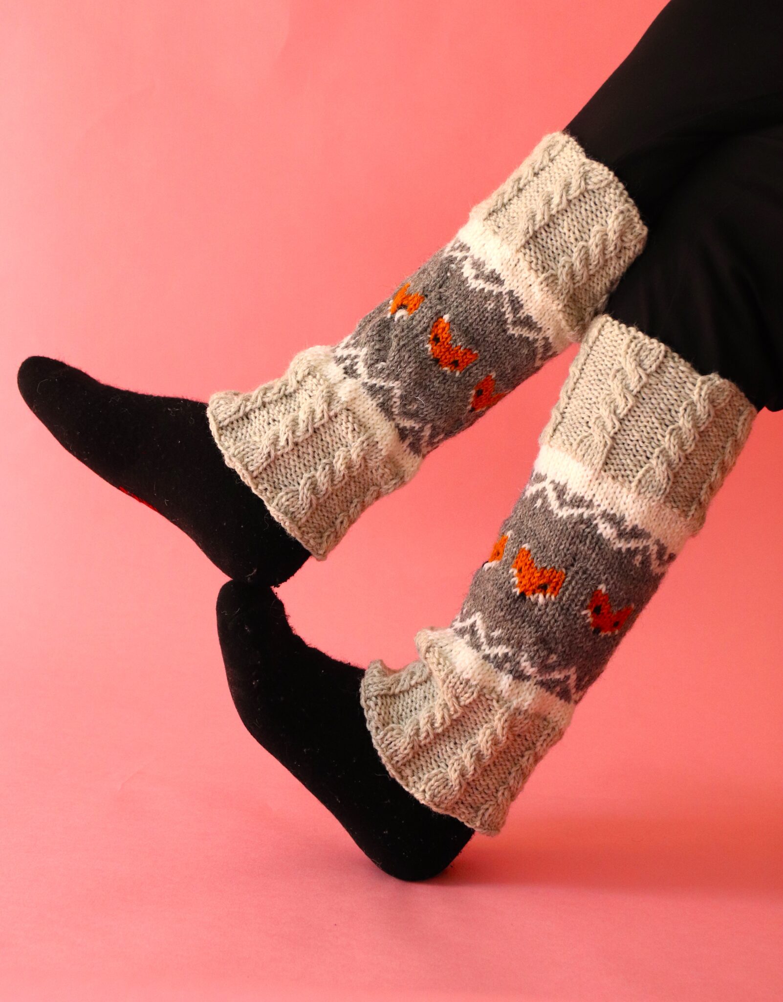 Aivan ihanat nää kettusäärystimet! 😍 Hyvin valittu värit tuohon ympärille ja ylä-, sekä alaosaan. Tälläiset ois kyl tosi hienot, ketut ovat upeita eläimiä. Muksulla onkin jo kettuvillasukat, mutta säärystimet ois myös pop! 🦊💕