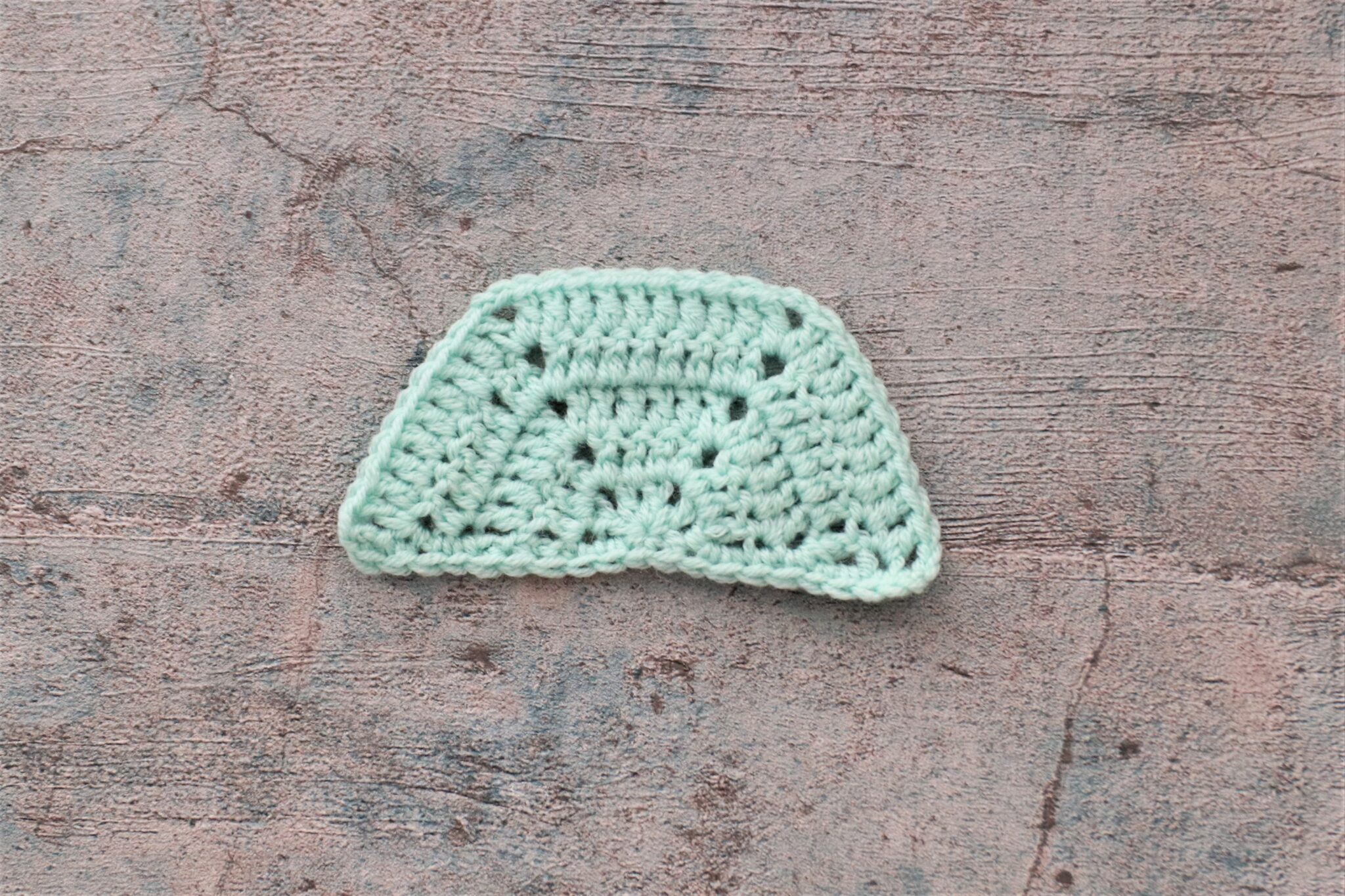 Kerroksen päätyttyä virkkaa puolipylväitä n. ¼ kerroksen verran. Käänny takaisinpäin ja virkkaa vielä sama takaisin aloituskohtaan.