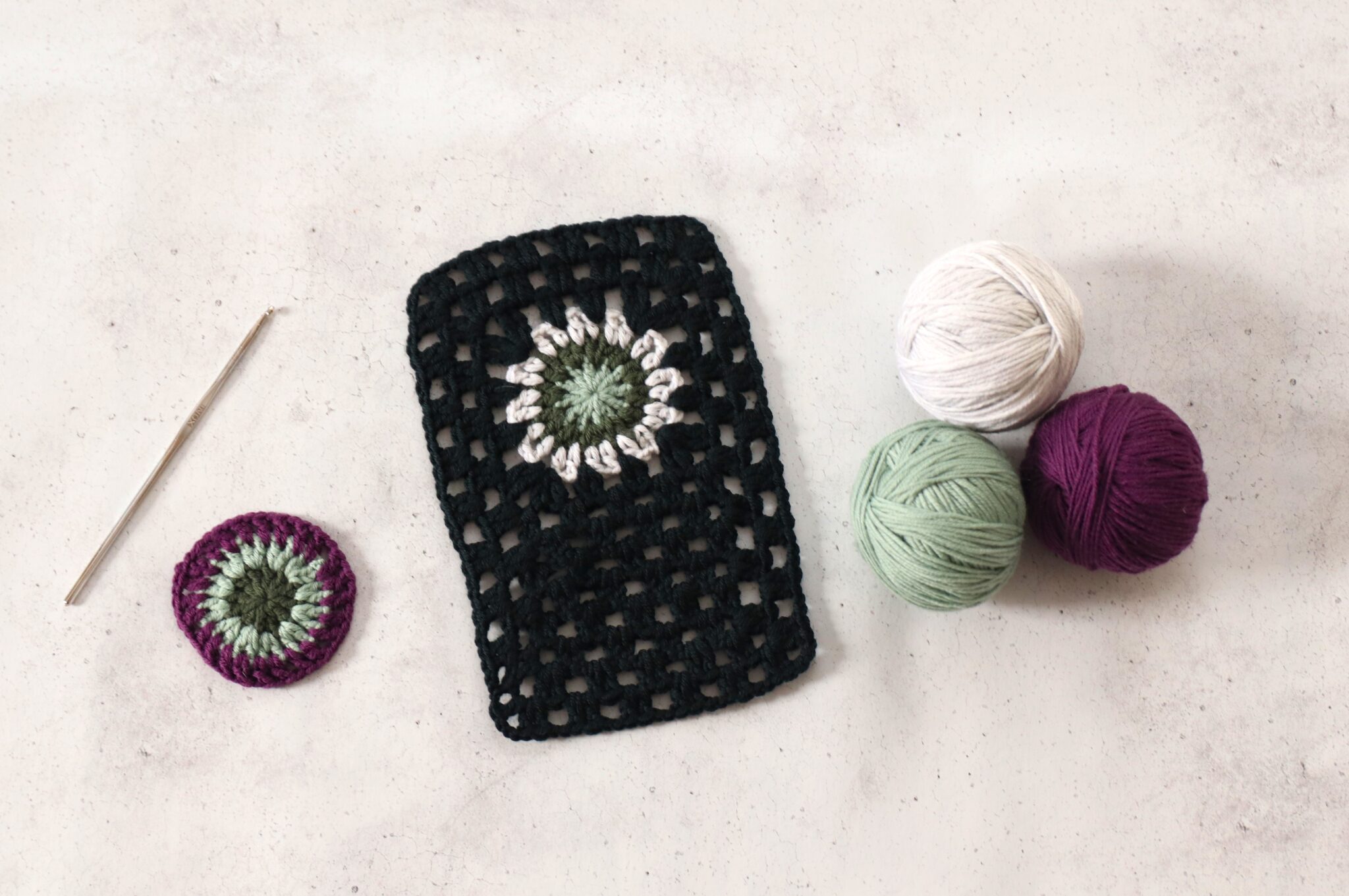 – Kun 4.kerros on virkattu, jatketaan edestakaisin virkkauksella seuraavat 6 kerrosta. Näin tilkusta saadaan suorakulmion muotoinen. –