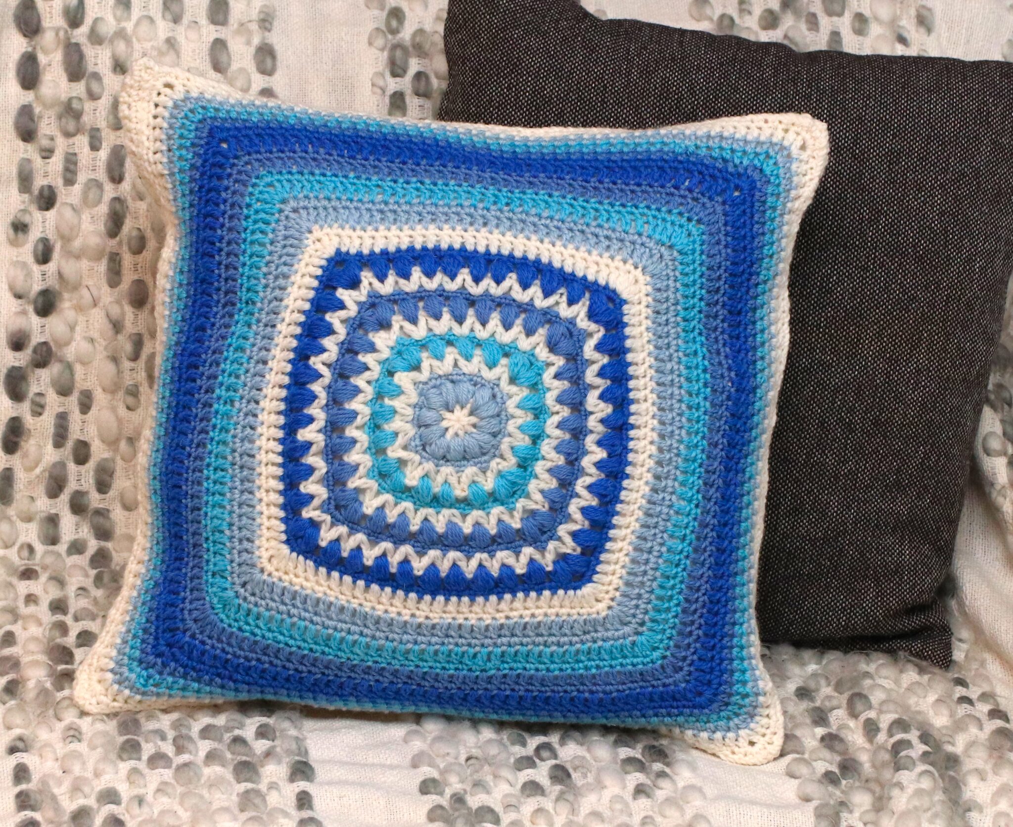 Talvisilla väreillä virkattu tyynynpäällinen voi olla esillä vaikka koko talvikauden! 😊