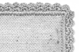 3.krs: Virkkaa jokaiseen kjs-kaareen seuraavasti: 2 p, 2 kjs, 2 p. Toista vielä 7 kertaa.