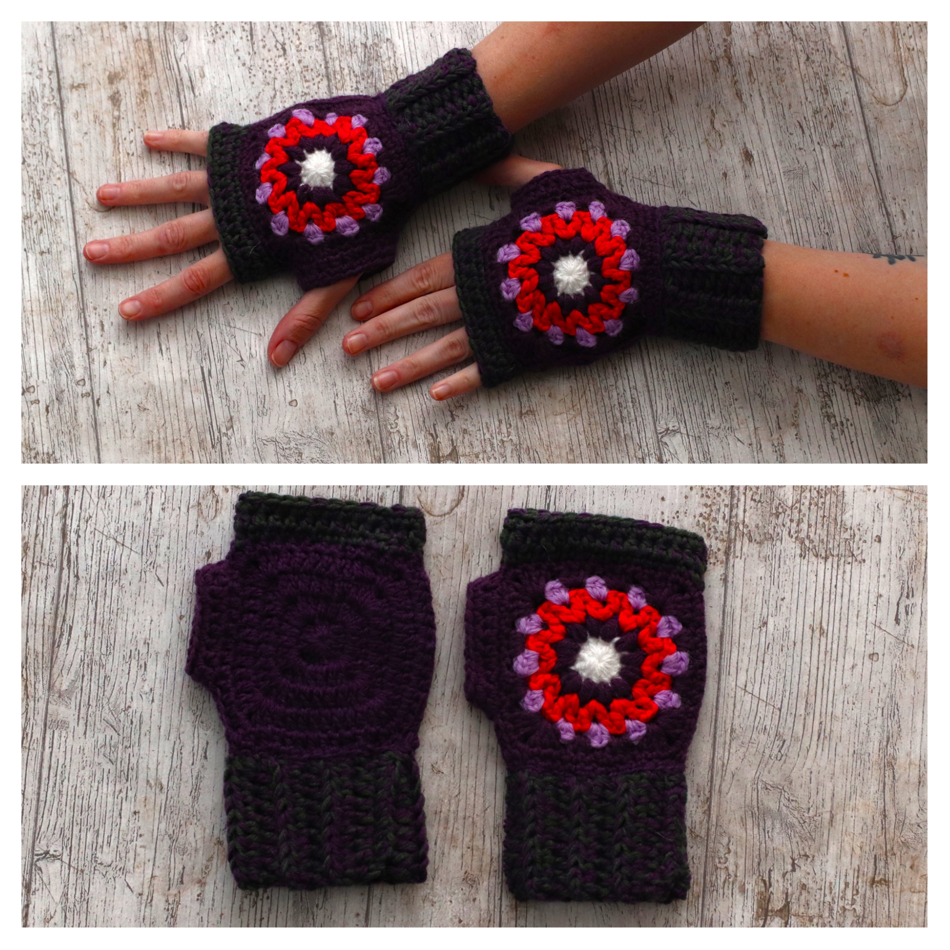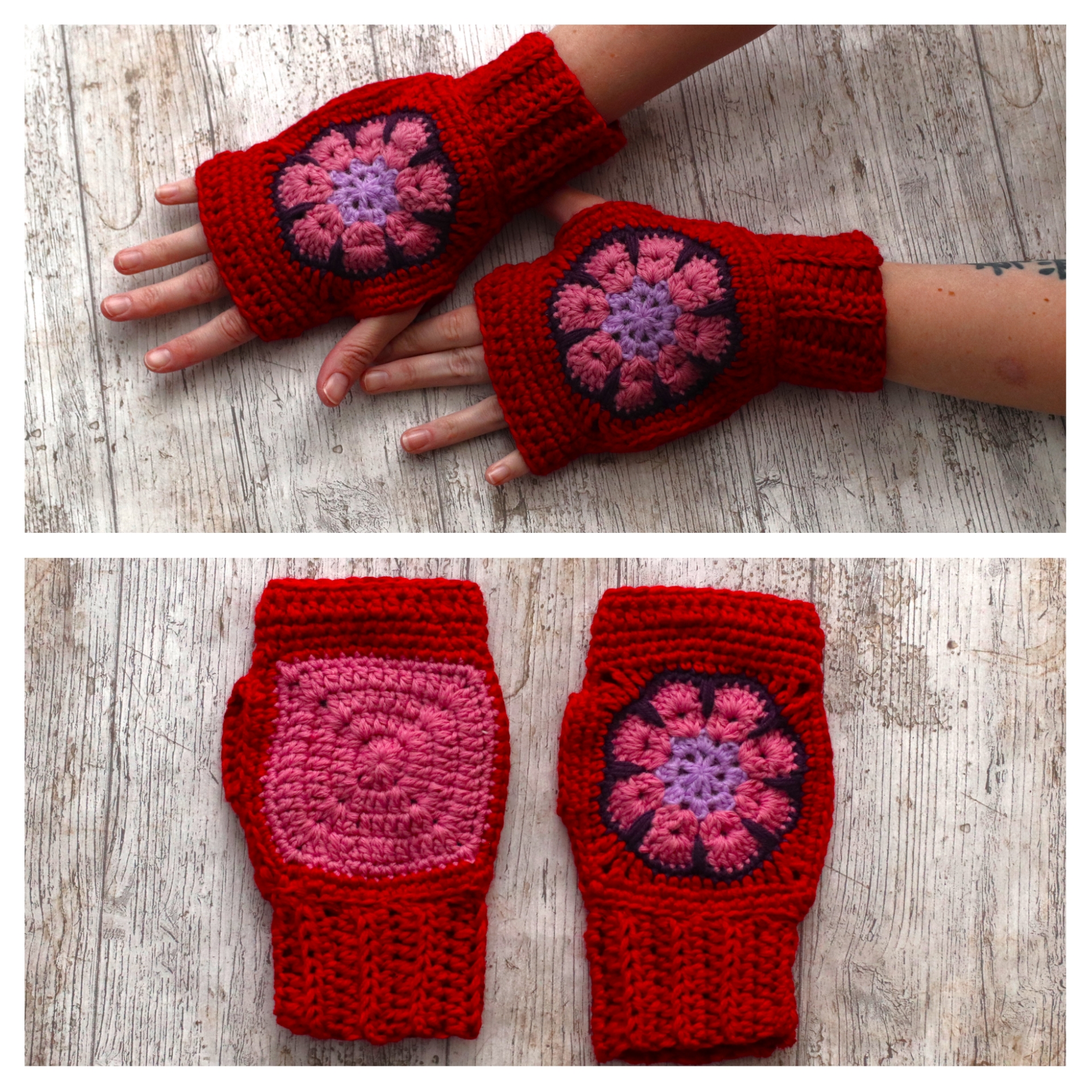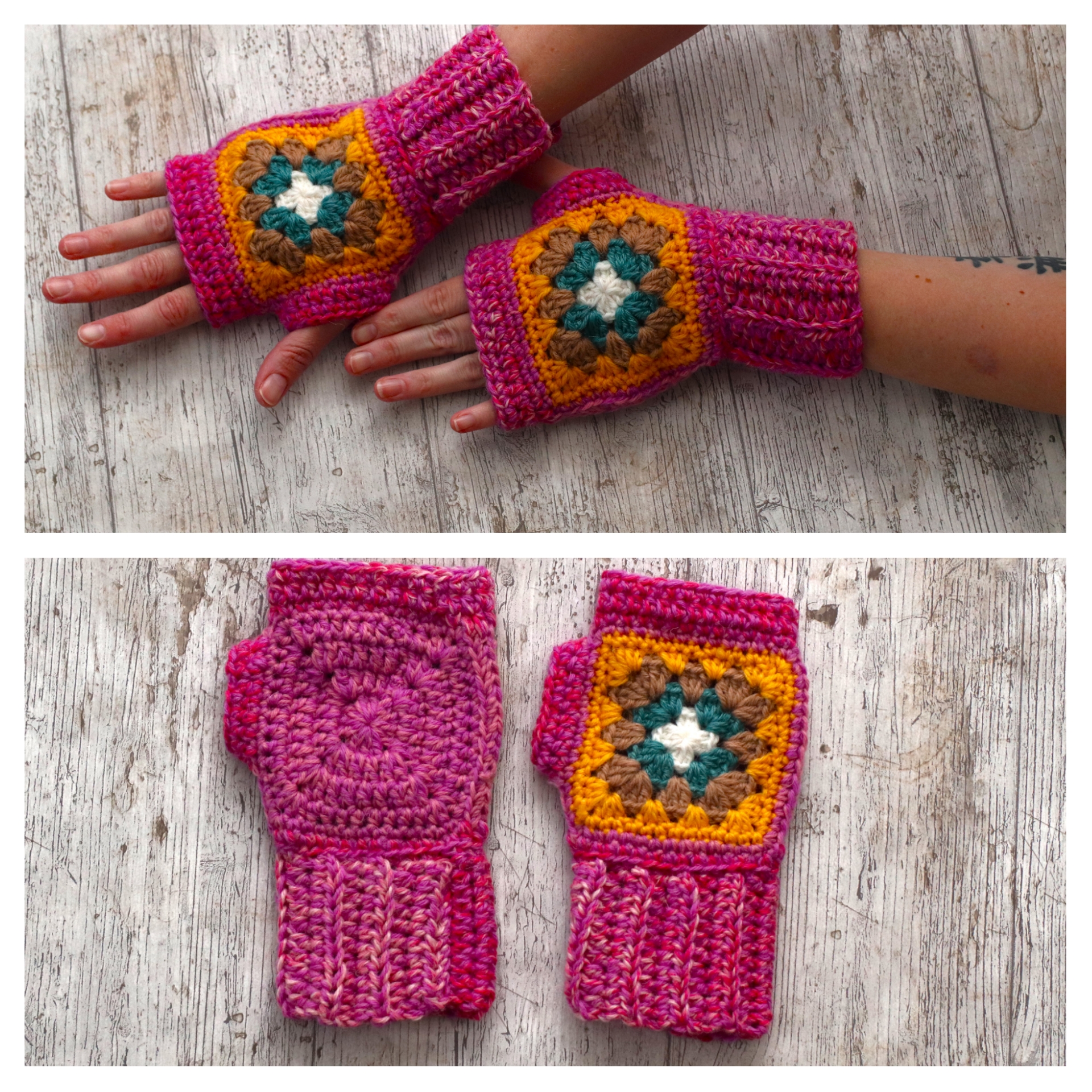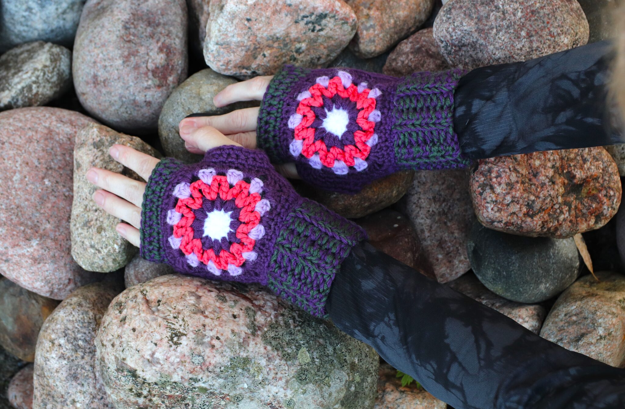 Omalla kohdalla ehkä ensisijainen syy toteuttaa nämä mallit on runsas jämälankojen määrä. Minäkin uskon nimittäin siihen, että kun silmä välttää, jämälangat lisääntyvät keskenään. 😊 Ne eivät vaan lopu sitten millään. Yhden (omasta mielestäni) hyvän keinon keksin miten jämälankojen hävitykseen saa vauhtia: käytä kaksinkertaista lankaa! 😊 Näissäkin kämmekkäissä jokaisen ranne- ja sormiosat on virkattu kaksinkertaisilla langoilla. Tulee paksumpi (eli lämpimämpi 😊) ja pääsee eroon jämälangoista. Kaikki voittaa! 😊