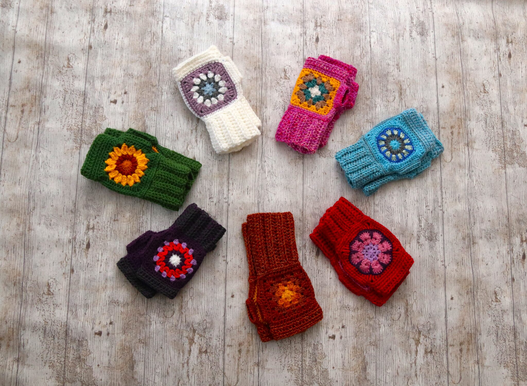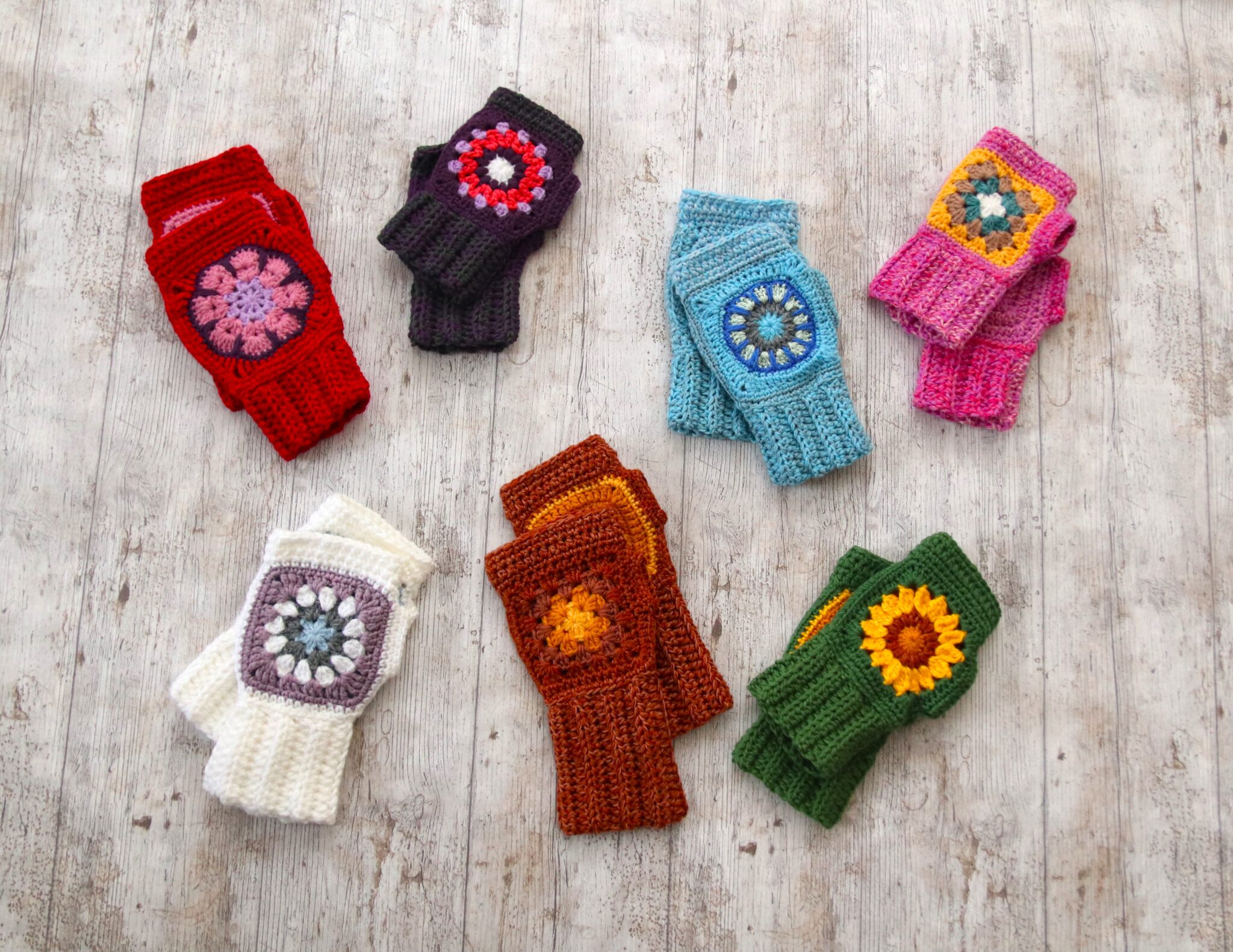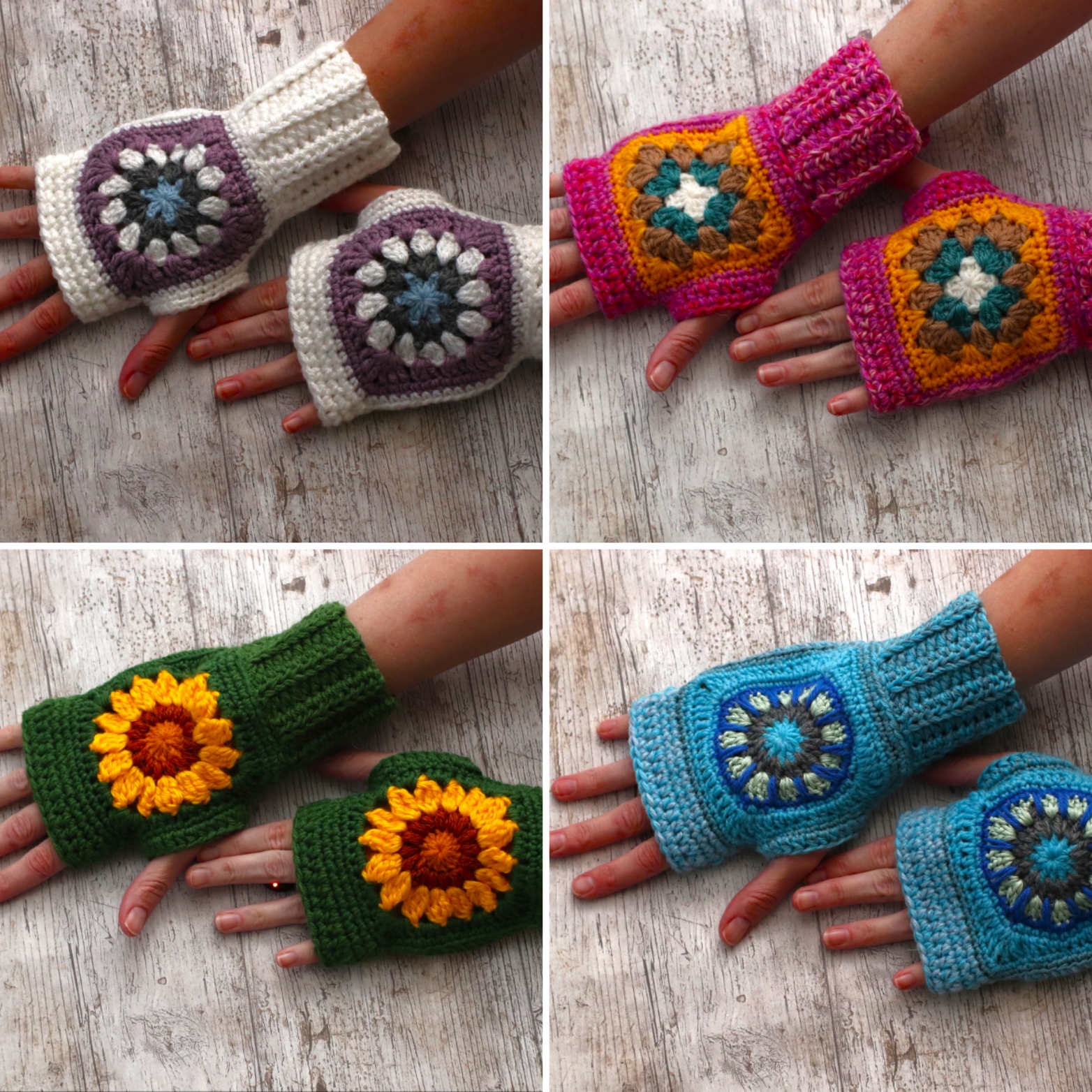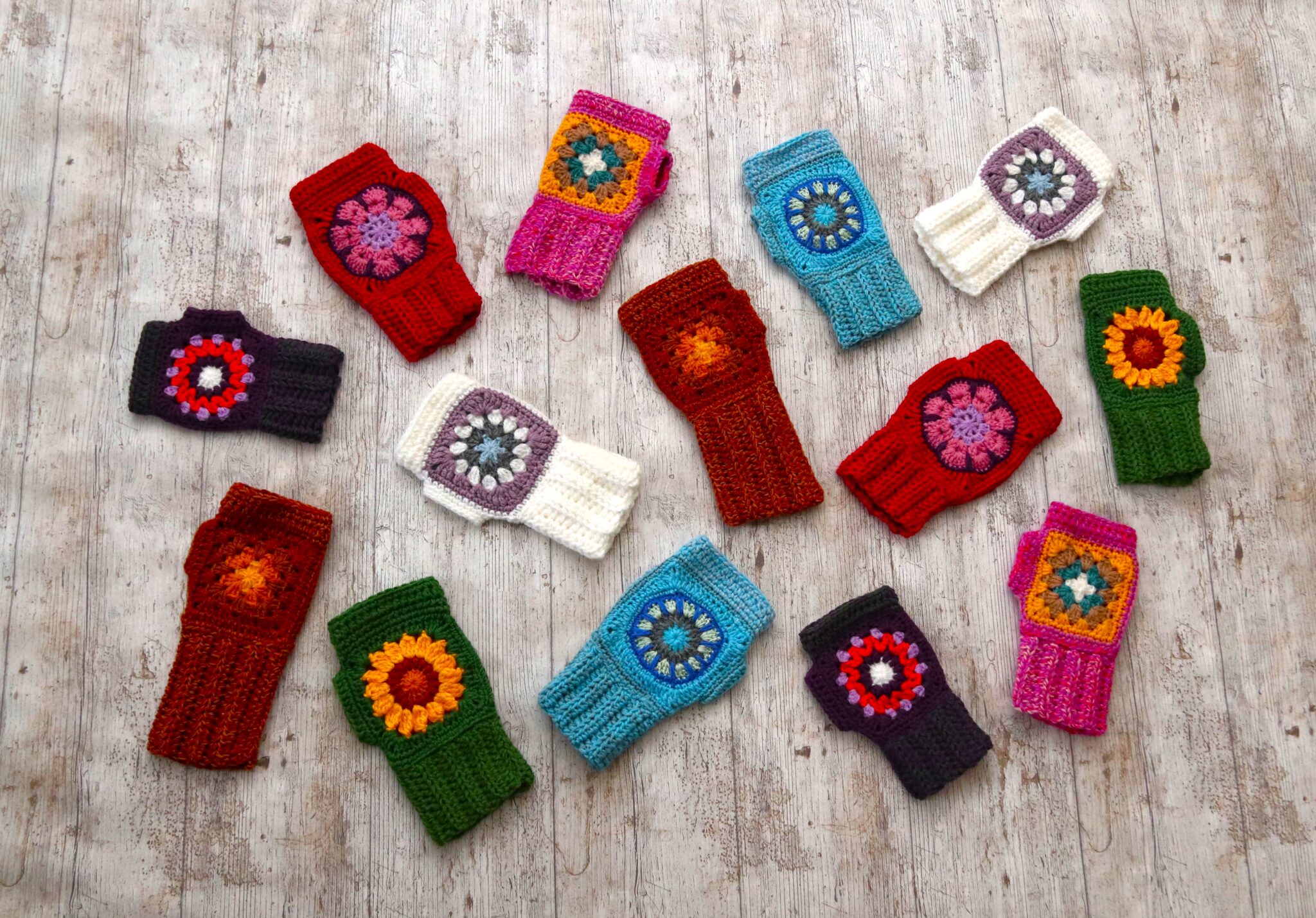 Omalla kohdalla ehkä ensisijainen syy toteuttaa nämä mallit on runsas jämälankojen määrä. Minäkin uskon nimittäin siihen, että kun silmä välttää, jämälangat lisääntyvät keskenään. 😊 Ne eivät vaan lopu sitten millään. Yhden (omasta mielestäni) hyvän keinon keksin miten jämälankojen hävitykseen saa vauhtia: käytä kaksinkertaista lankaa! 😊 Näissäkin kämmekkäissä jokaisen ranne- ja sormiosat on virkattu kaksinkertaisilla langoilla. Tulee paksumpi (eli lämpimämpi 😊) ja pääsee eroon jämälangoista. Kaikki voittaa! 😊