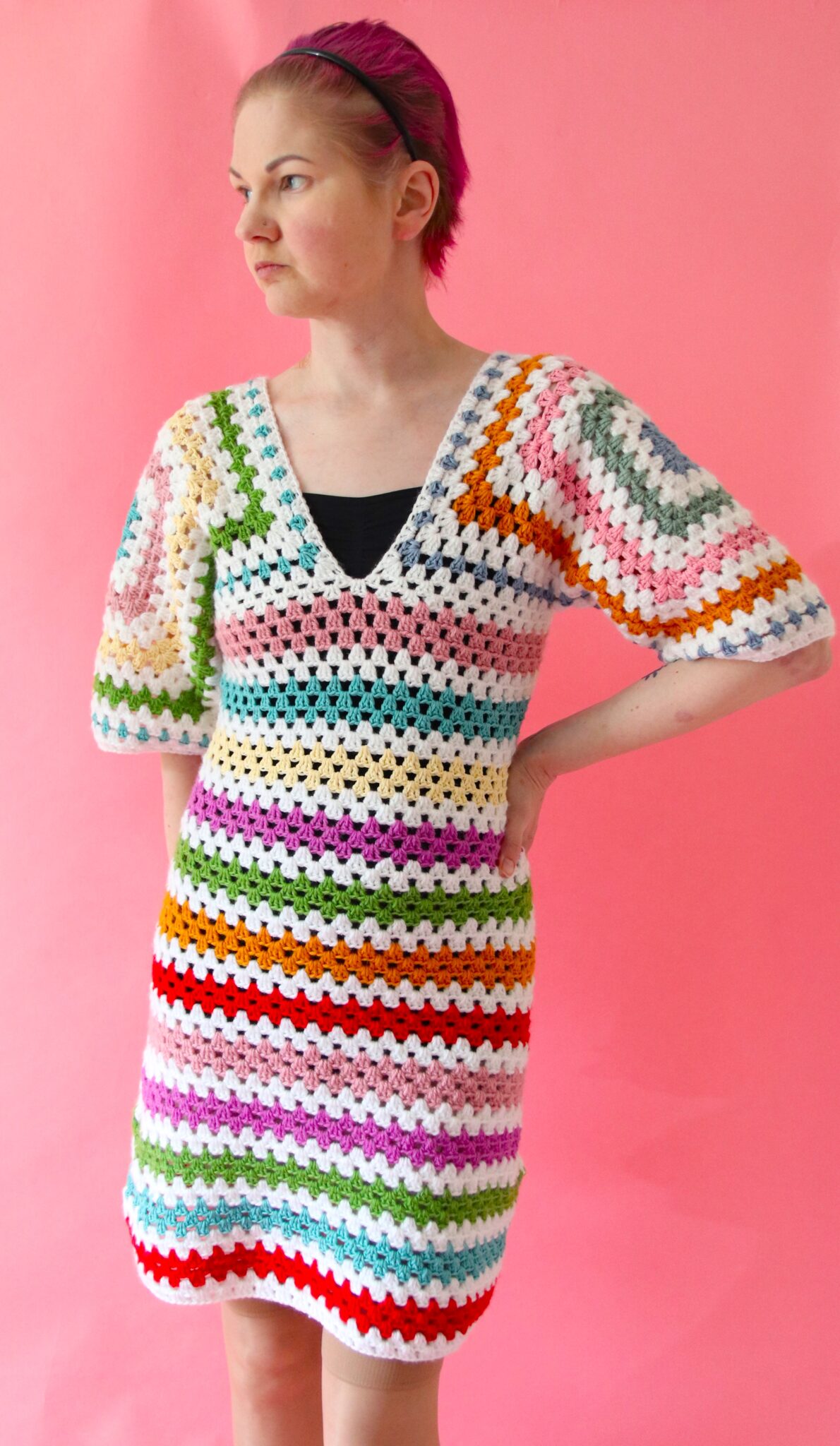 Sitä edelleen jaksaa ihmetellä kuinka isoäidinneliö taipuu vaikka mihin! 😊 Tämä virkattu mekko on todiste siitä. Alkuperäinen idea ei ole omani, vaan kaikki lähti siitä kun joku postasi englanninkieliseen virkkausryhmään mekon nimellä ’hexidress’. Ajattelin heti, että ompa mielenkiintoinen idea! Siis hexicardista tehdä hexidress. Jos hexicardi on vieras käsite niin tutustu siihen tästä. 😊