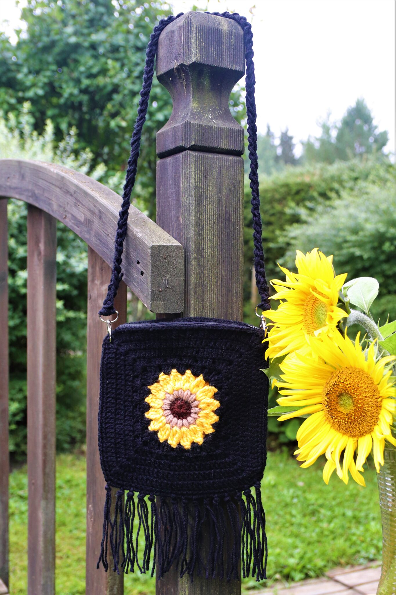 Psst… Tässä pari linkkiä aiempiin virkattuihin auringonkukkalaukkuihin 😊