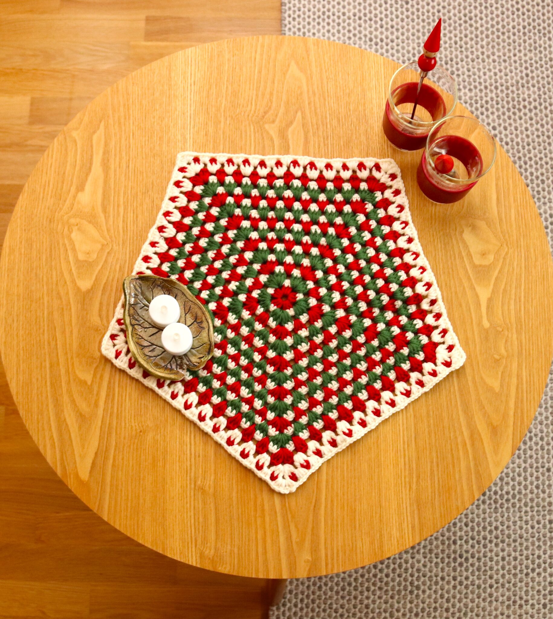 - Jouluiset värit korostuvat kivasti tässä pöytäliinassa. 😊