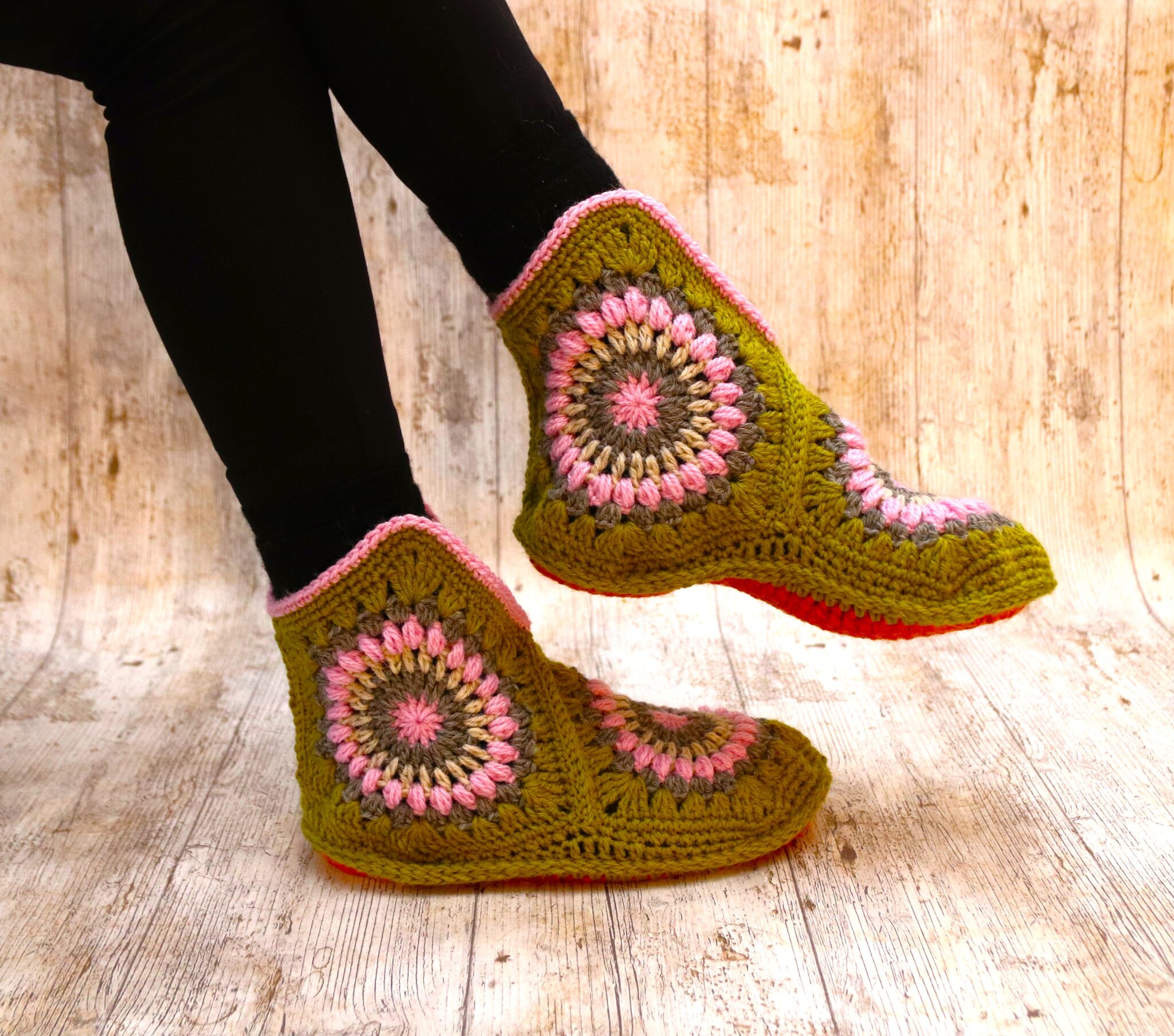 Virkatut isoäidinkuusikulmiotossut