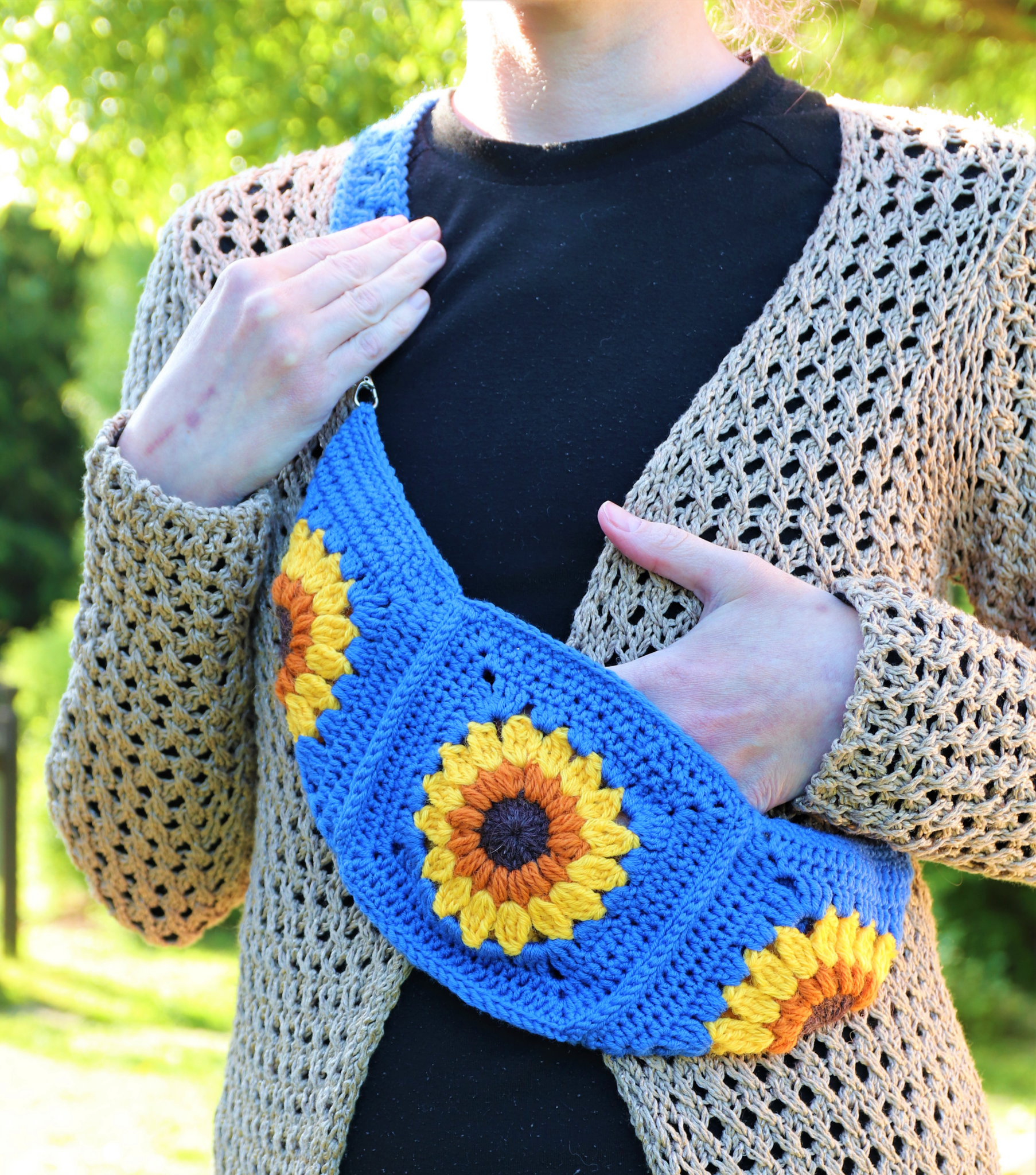 Tätä trendilaukkua voi jalostaa niin monella tavalla! 😊 Tässä kohtaa päätin kokeilla auringonkukka -versiota. Ja jälleen rakkaalla lapsella on monta nimeä: vyölaukku on ehkä meille joillekin se tutumpi termi, ja tällä hetkellä ”muodin aallonharjalla surffaajille” se lienee crossbody bag. 😊 Miten vaan, kaikki käy! Tässä ohjeet! 😊